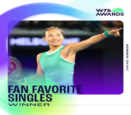 据央视新闻消息,据WTA国际女子网球协会,郑钦文今年当选WTA年度最受欢迎单打球员,这是她连续第二年当选。