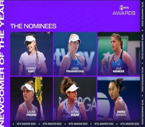 从2022年在巡回赛崭露头角开始,郑钦文连续四年斩获WTA官方奖项:
